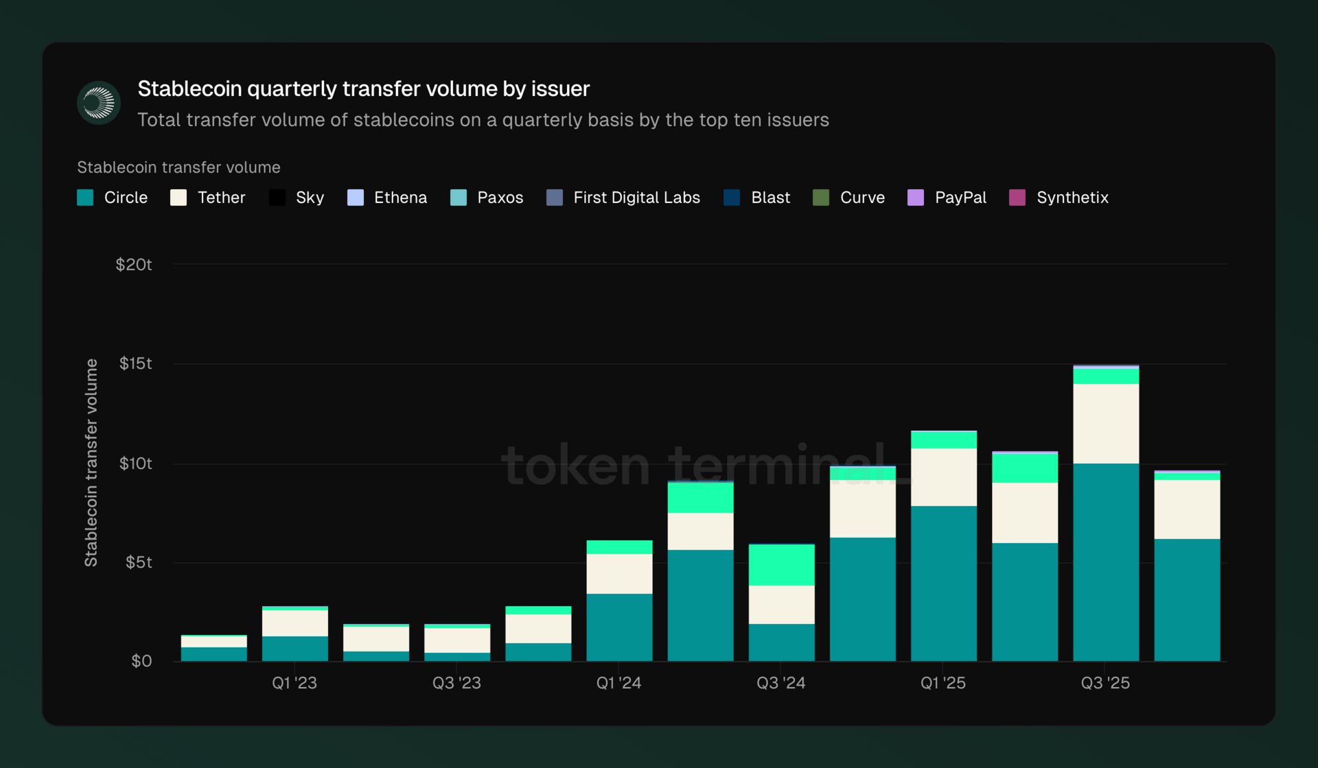 $3.6 trillion in adjusted stablecoin transaction volume over past 30 days (via 1.5 billion transactions)